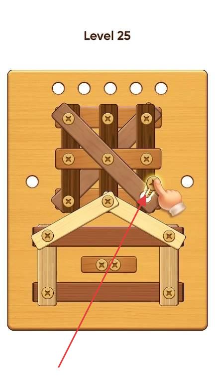 1、进入关卡后,观察木板分布与重力方向,点击屏幕放置螺丝,将木板连接到固定点或其他稳定结构,每颗螺丝的承载力有限,需合理规划位置以分散应力。