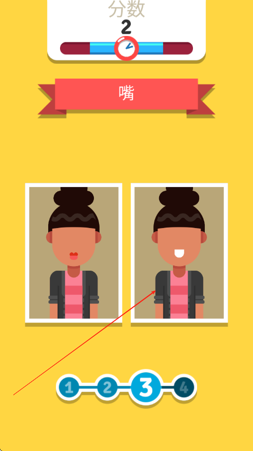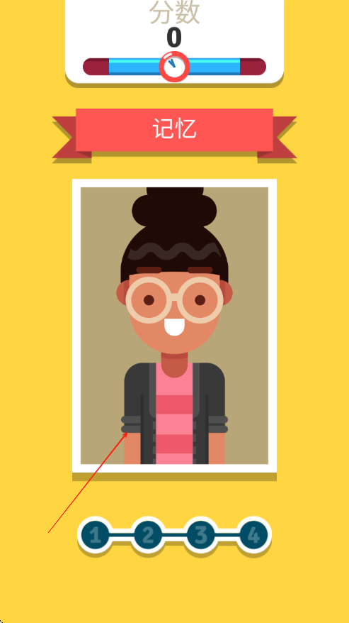2、挑战阶段依次出现衣服、头发、嘴、眼镜四个部位的选择项,从多个相似图案中选出与记忆脸谱匹配的部件。