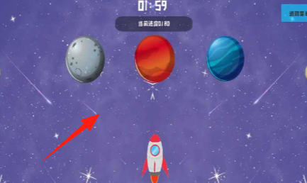 2、在倒计时内,观察行星位置,选择目标行星(如灰色月球),引导火箭飞行。