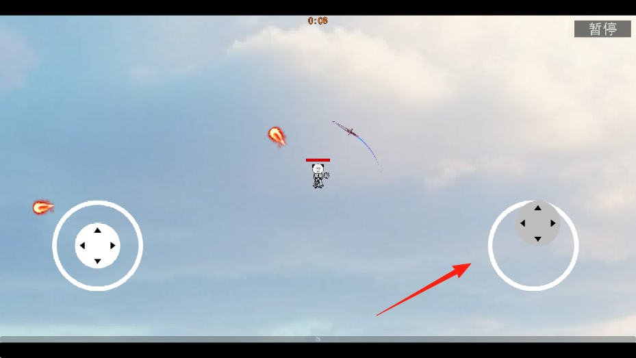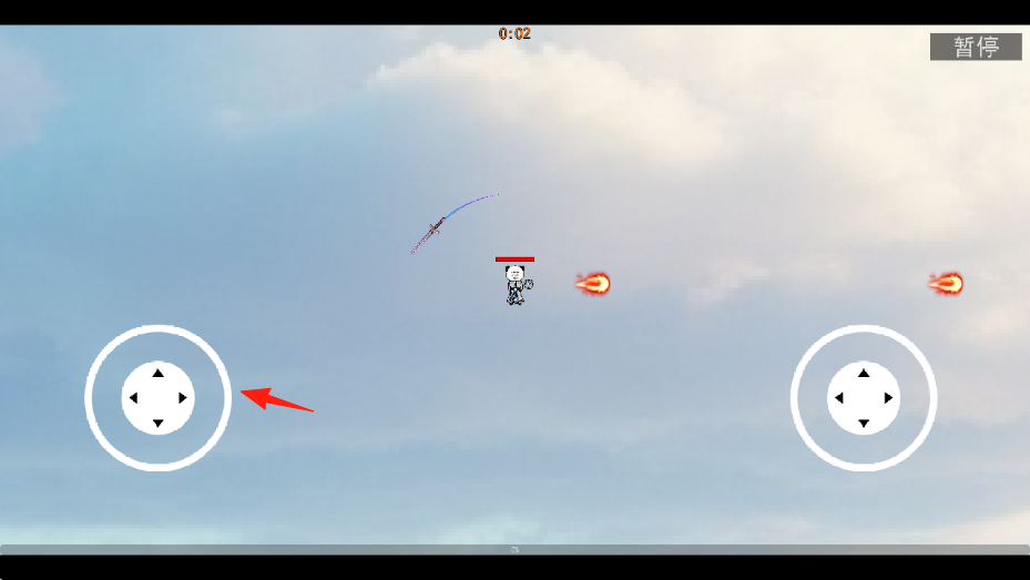 1、通过【左侧方向摇杆】控制角色移动,躲避火焰弹,调整位置接取武器道具。