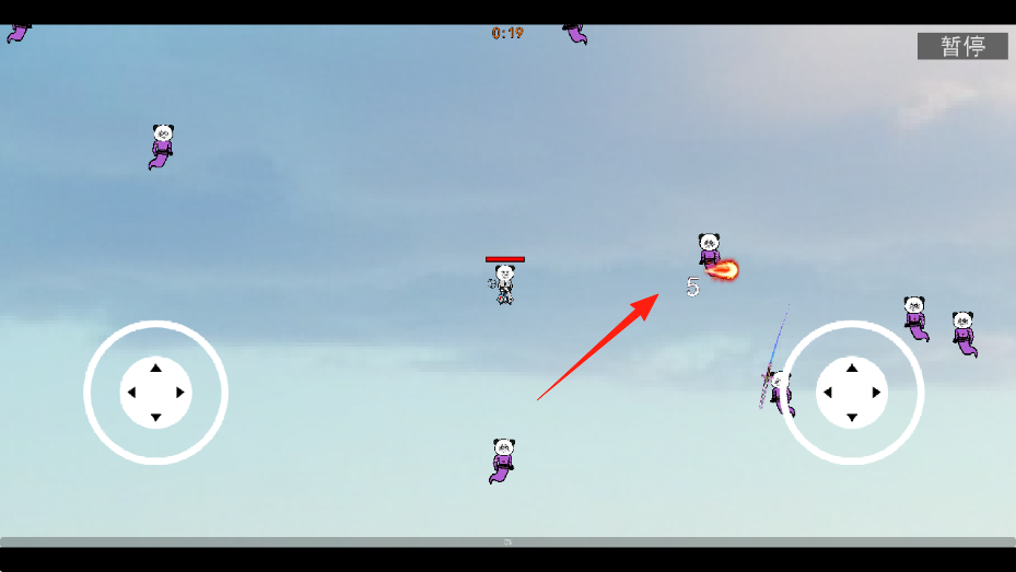 2、发现紫色熊猫敌人发射的【火焰弹(标有5)】,快速移动闪避,同时瞄准敌人射击。
