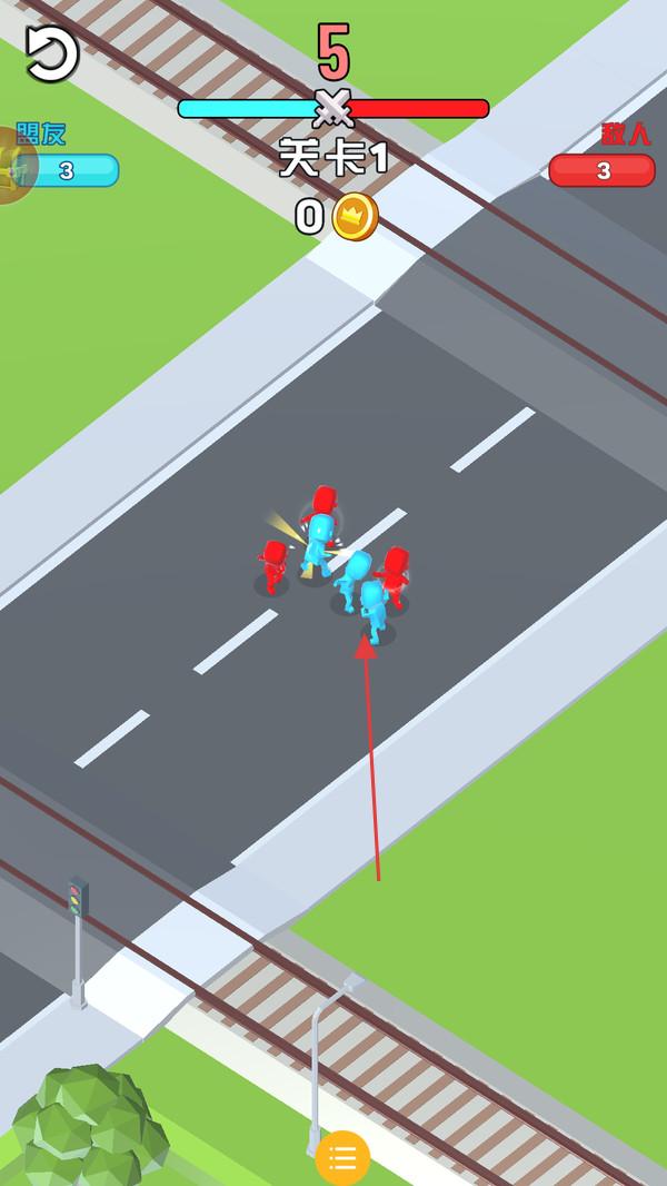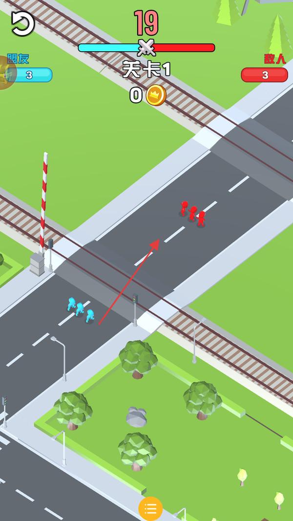 2、战斗中利用人数、路径策略,让部队与红色敌方(3人)交战,消灭敌人,推进关卡。