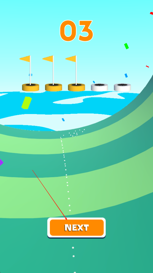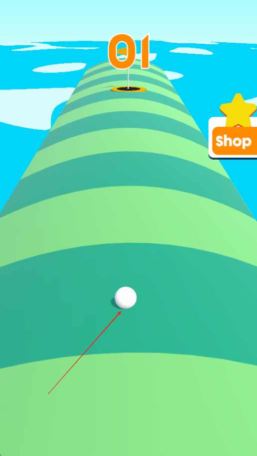 3、当球靠近球洞时,切换至推杆模式,精准控制微小力度,将球推入洞中完成该洞挑战,根据杆数多少获得星级评分和金币奖励。