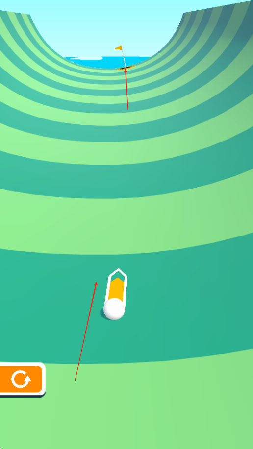 1、进入游戏后首先选择球场场景,在开球区通过滑动屏幕调整击球方向,长按屏幕蓄力控制击球力度,松开手指完成首次挥杆。