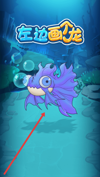 1、在游戏启动页,点击屏幕,进入《左边画个龙》游戏,开启绘画冒险,绘制独特鱼类等形象。