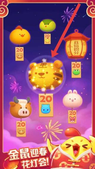 2、在“金鼠迎春-花灯会”活动界面,点击带有“20”积分的动物图标,参与活动,获取积分,兑换奖励。