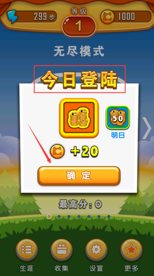2、点击黄色确定按钮,领取每日登陆奖励。