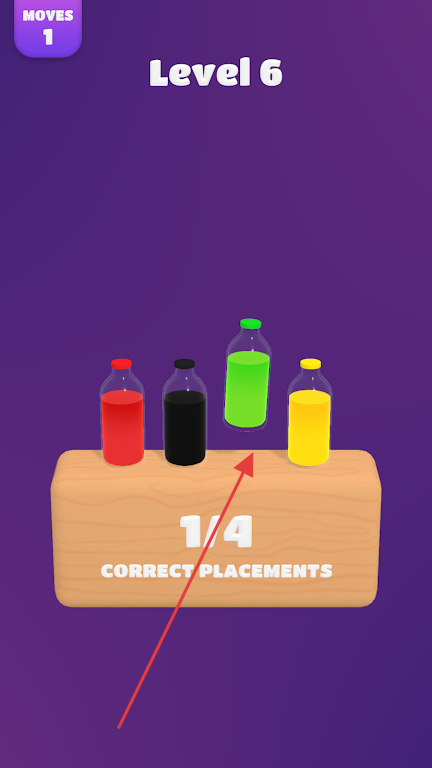 2、关卡推进中,面对更多颜色与复杂排列的瓶子,加快响应速度,精准判断颜色关联,优先匹配相邻同色瓶子,提升连线效率。