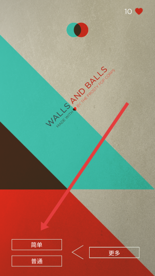 1、进入墙壁和球的游戏主界面后,操控者需要点击右下角【更多】的按钮,展开难度选择菜单。