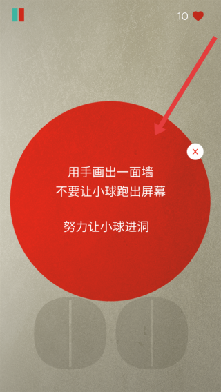 3、在游戏时依据系统提示,用手绘制墙壁,阻止小球出屏幕,助力小球进入洞穴,达成关卡目标。