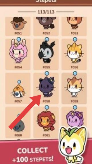 3、画面展示了宠物收集图鉴,“COLLECT+100STEPETS!”(收集100多种步行宠物)体现其宠物收集玩法,玩家可在游戏中收集不同的Stepets宠物。