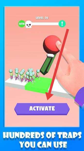 1、点击箭头指向的陷阱,调整位置后按【ACTIVATE】,触发机关,消灭下方敌人,完成关卡。