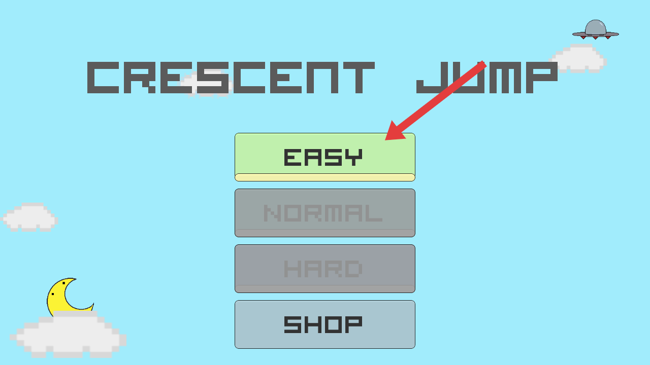 1、操控者进入月牙跳跃的游戏,需要点击【EASY】的按钮,可以选择简单难度开启月牙跳跃冒险。