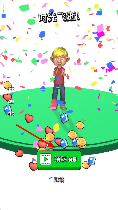 2、奔跑过程中收集代表不同人生资源的道具,如书本(知识)、金币(财富)、爱心(人际关系),道具数量影响后续选择的可能性。