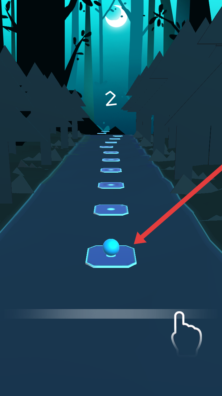 2、求落点达终点:跳跃中需让球球准确落在平台上,落点在圆中心可看到音符,确保不偏离路线,持续跳跃直至到达终点,考验节奏把控与反应的配合。