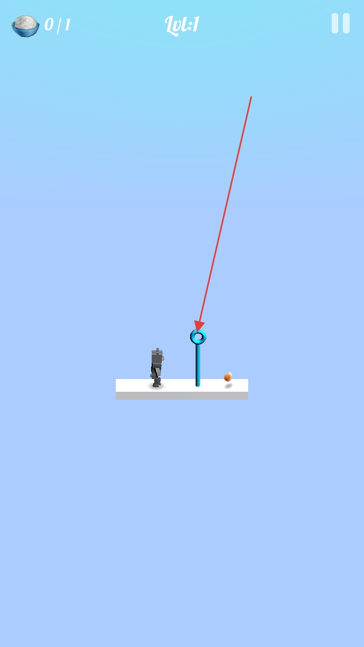 2、在游戏场景,操控角色或利用机制,让小球穿过圆环,完成目标(如运送饭团)。