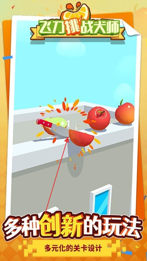 2、多元挑战场景:包含水果靶场、木质工坊、金属实验室等8大主题场景,每个场景的重力参数与障碍物特性不同,如太空场景中飞刀呈无重力直线飞行。