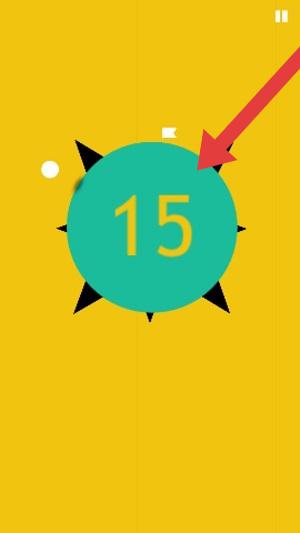 1、在圆球跳跃游戏中,操控白色小球,避开青色带刺圆球(显示数字15),防止碰撞受伤,保障生存。
