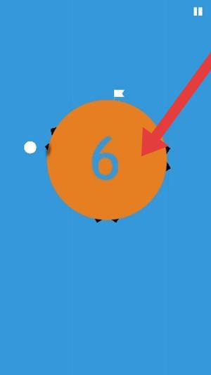 3、操控者需要持续用白色小球撞击橙色带刺圆球(显示数字6),降低其数值,达成关卡挑战目标。