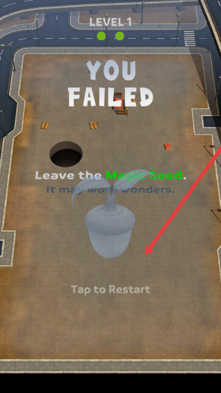 3、失败后,点击【Tap-to-Restart】,重启Level-1,利用“Magic-Seed”提示,优化吞噬策略,争取胜利。
