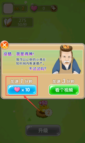 2、点击加速图标,提升小鸡产蛋效率。