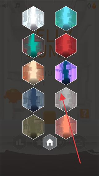1、在关卡选择界面,点击带箭头标识的六边形关卡图标,进入对应挑战,开启跳跃冒险。