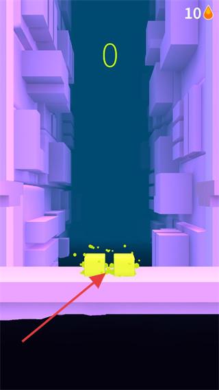 2、操控黄色方块角色,于紫色场景中,看准时机跳跃,避开障碍,沿通道向上推进,留存水滴资源。