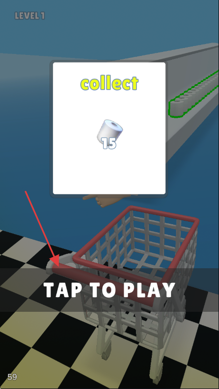 1、进入【LEVEL1】,看到【TAP TO PLAY】提示,点击开始游戏,目标是收集【collect】的【15】个物品。