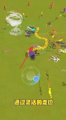 1、操控角色移动,利用“灵活走位”躲避敌人攻击,触发技能(如旋风、火焰)清理大量敌人。