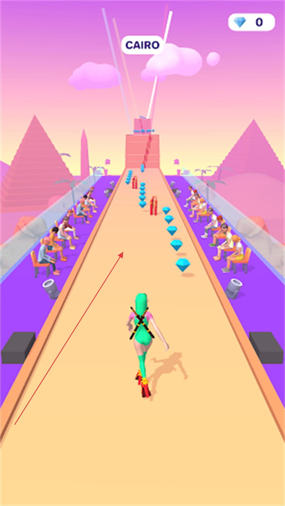 3、多元主题的关卡设计:涵盖城市街道、废弃工厂、霓虹夜市等数十种主题赛道,每个赛道的障碍物组合(如路障、跳板、移动平台)各不相同,且随关卡推进难度升级。