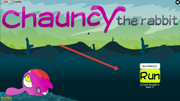 1、点击【Run】,启动《Chauncy-the-rabbit》,操控粉色兔子开始奔跑,进入冒险关卡,准备躲避障碍。