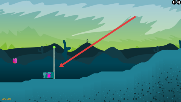 3、遇到石柱障碍(箭头指向),点击屏幕让兔子跳跃或滑行通过,避免碰撞,持续冒险,解锁后续场景。
