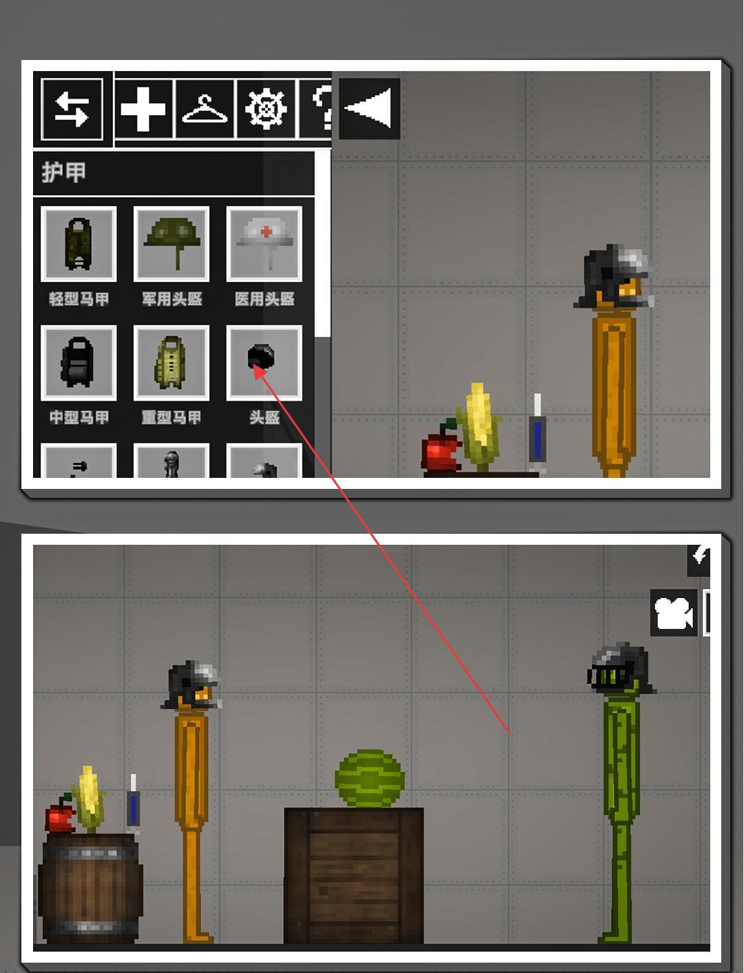 1、进入游戏,从左侧菜单选护甲(如头盔)、爆炸物(如手榴弹)等道具,拖放给场景内角色装备、使用。
