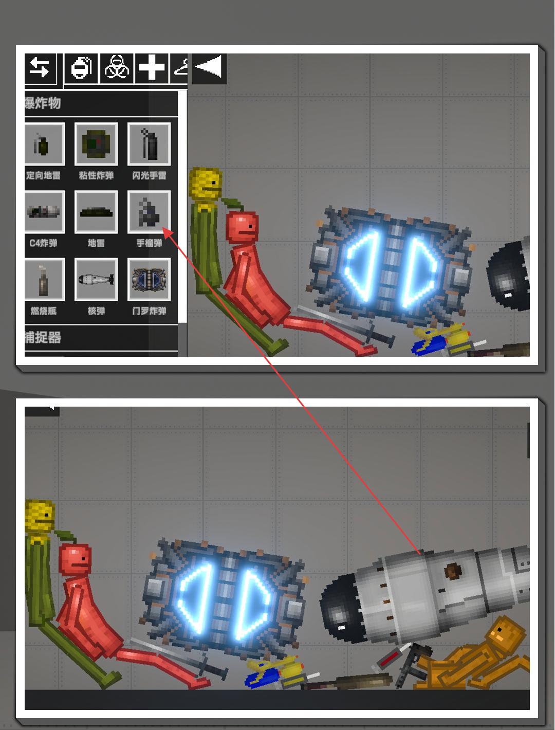 2、操控角色互动,借助道具(护甲提升防御,爆炸物制造伤害),模拟战斗、实验等场景,观察物理反馈。
