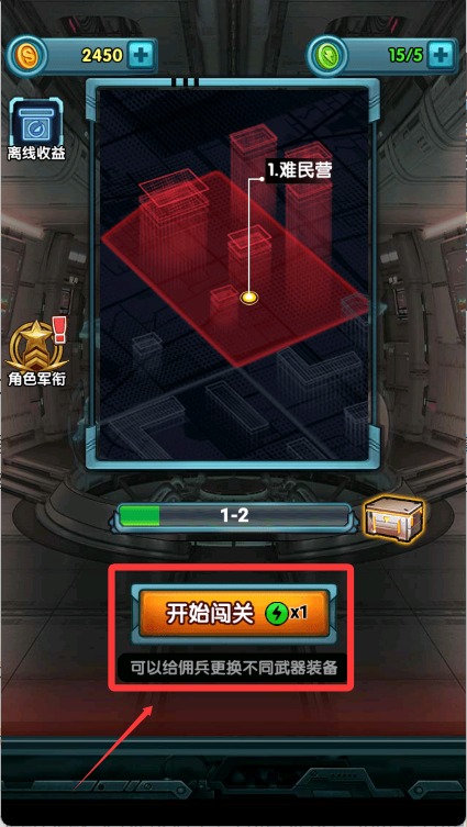 1、进入游戏后点击屏幕下方开始闯关开始游戏。