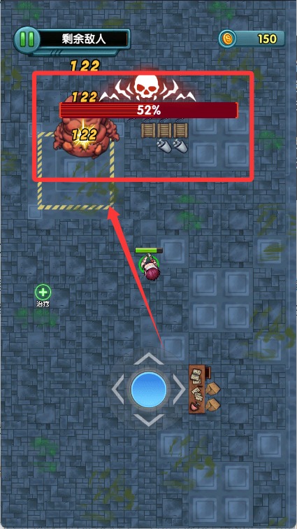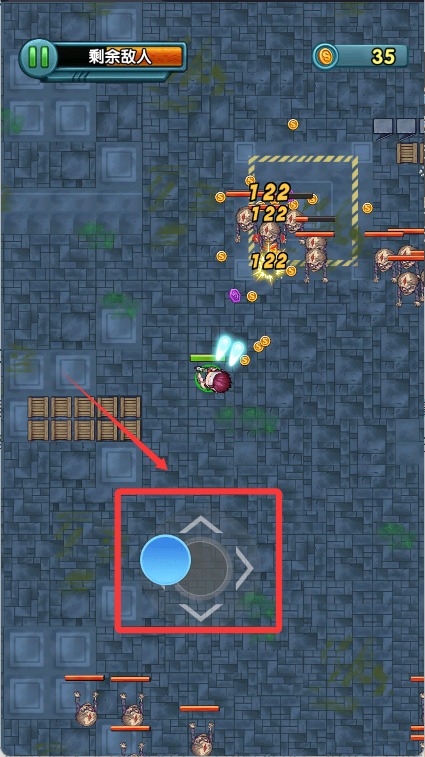 2、开始游戏后滑动屏幕下方摇杆即可移动角色,角色会自动攻击。