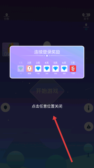 1、点击任意位置,关闭“连续登录奖励”弹窗,领取2天奖励(煎蛋),为游戏积累道具。