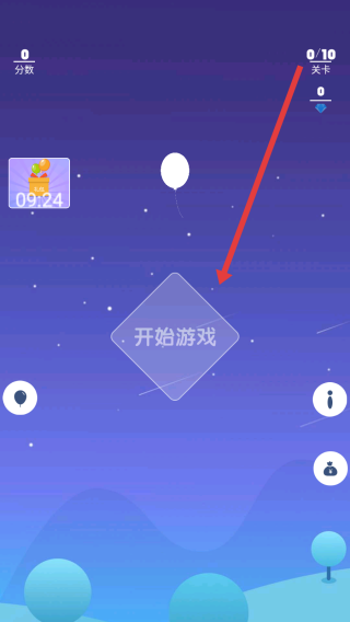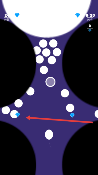 2、点击【开始游戏】,进入关卡选择,从第1关起步,操控小球(箭头指向)收集钻石,躲避黑色障碍。