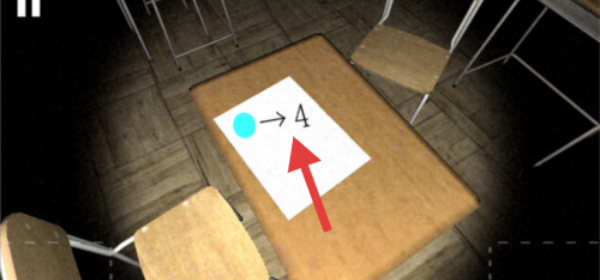 2、查看课桌上箭头所指的提示信息“→4”,获取解谜线索。