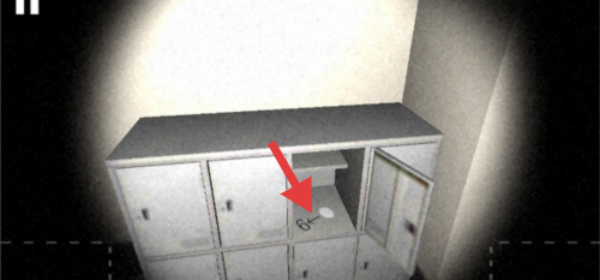 3、按箭头指向,查看储物柜上的标记“6←”,进一步收集线索推进游戏。