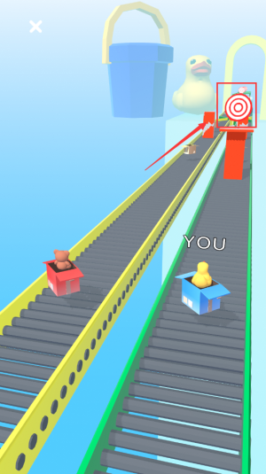2、控制YOU盒子瞄准靶心,射击传送带上的目标。
