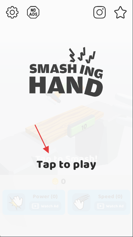 1、进入游戏界面,点击【Tap to play】开始体验【SMASHING HAND】游戏。
