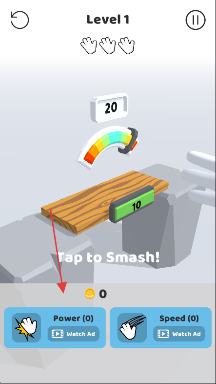 2、在【Level1】关卡中,留意下方手的图标,进行升级力量。