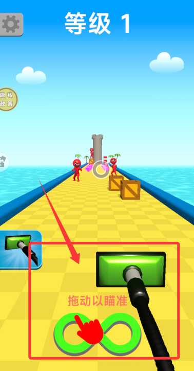 1、游戏开始后,需拖动屏幕瞄准目标,抓住最佳时机发动攻击,清除前方障碍物与敌人。