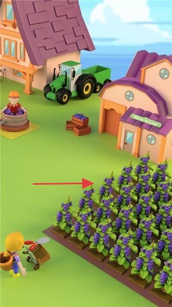 1、进入游戏后,在葡萄园区域进行葡萄种植,浇水、施肥,悉心照料等待葡萄成熟。