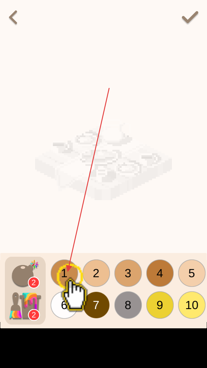 3、按顺序点击颜色盘数字,为像素画对应区域上色,完成国家主题画作,解锁更多国家与图案,推进游戏 。