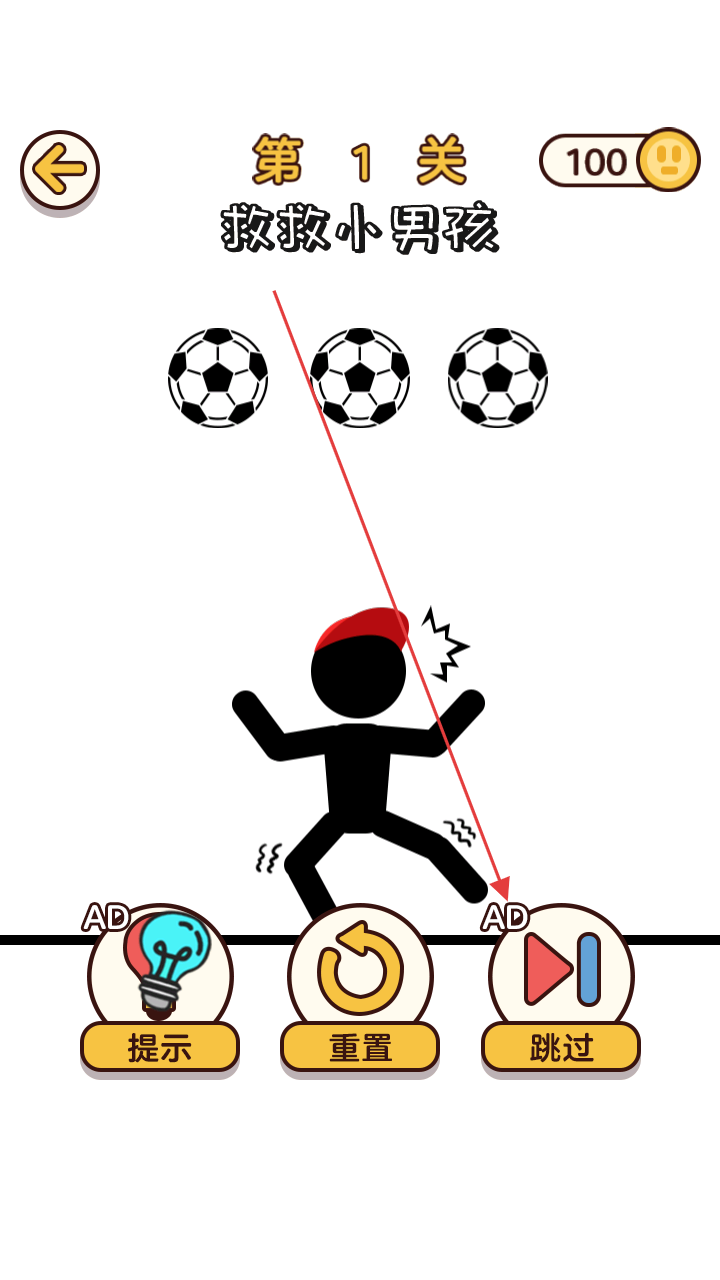 2、在关卡内,观察场景(如躲避足球、解救目标),利用下方“提示”“重置”等功能,尝试操作解谜。