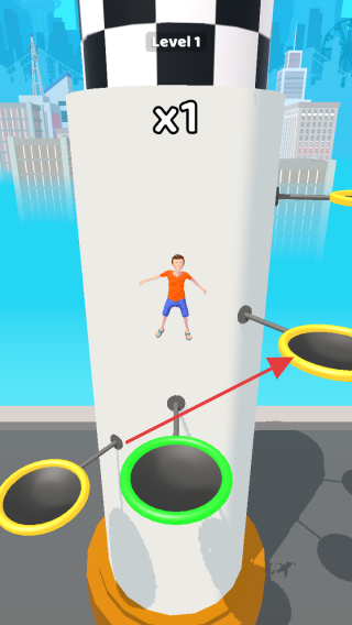 3、渐进难度体系:关卡从单蹦床直线跳跃,逐步升级到多蹦床联动、复杂障碍组合,配合移动平台与限时挑战,持续激发挑战欲望。