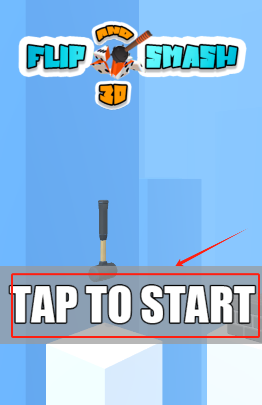 1、看到FLIP SMASH3D游戏界面,点红框里的TAP TO START文字就能开始游戏啦。
