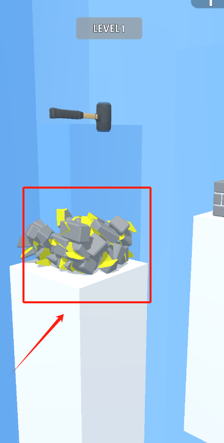 2、进入第一关,看准空中的锤子砸向碎块,等它落下时点屏幕把碎块全砸飞就行。